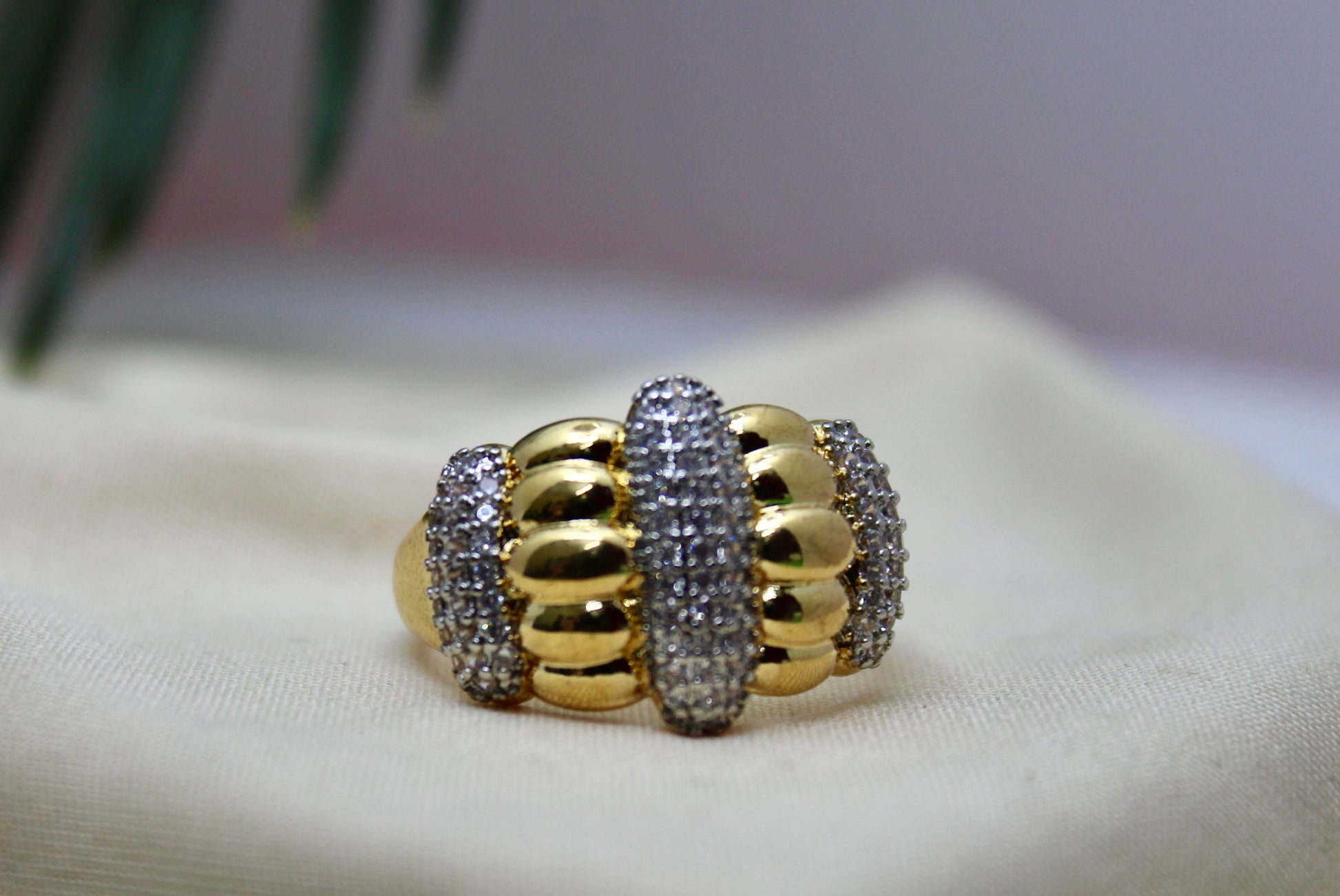 This Bold Luxe Dome Ring brings chunky gold vibes with rows of sparkling stones on the sides. A statement piece that instantly upgrades any fit – from chill brunch looks to glam night-outs.