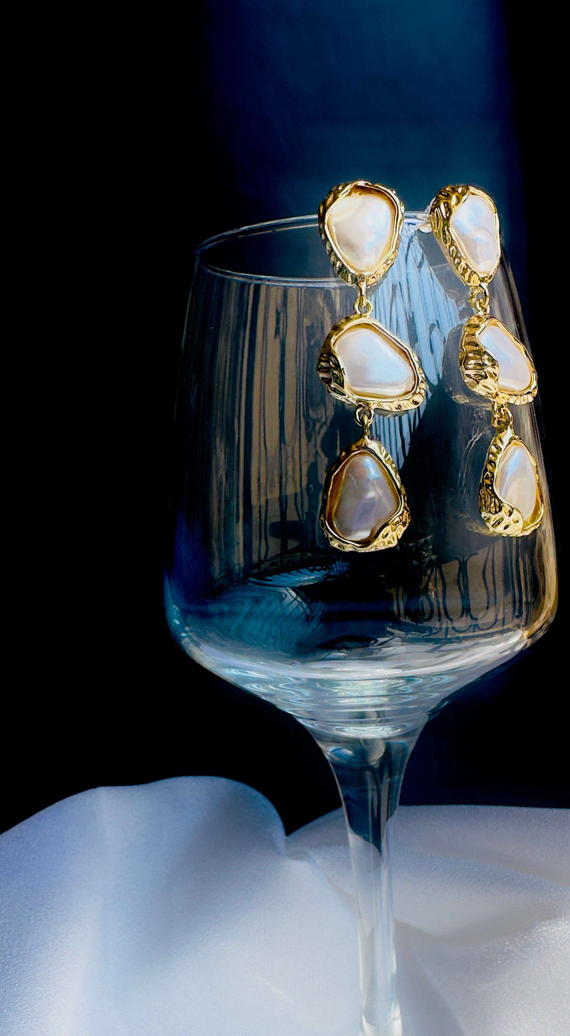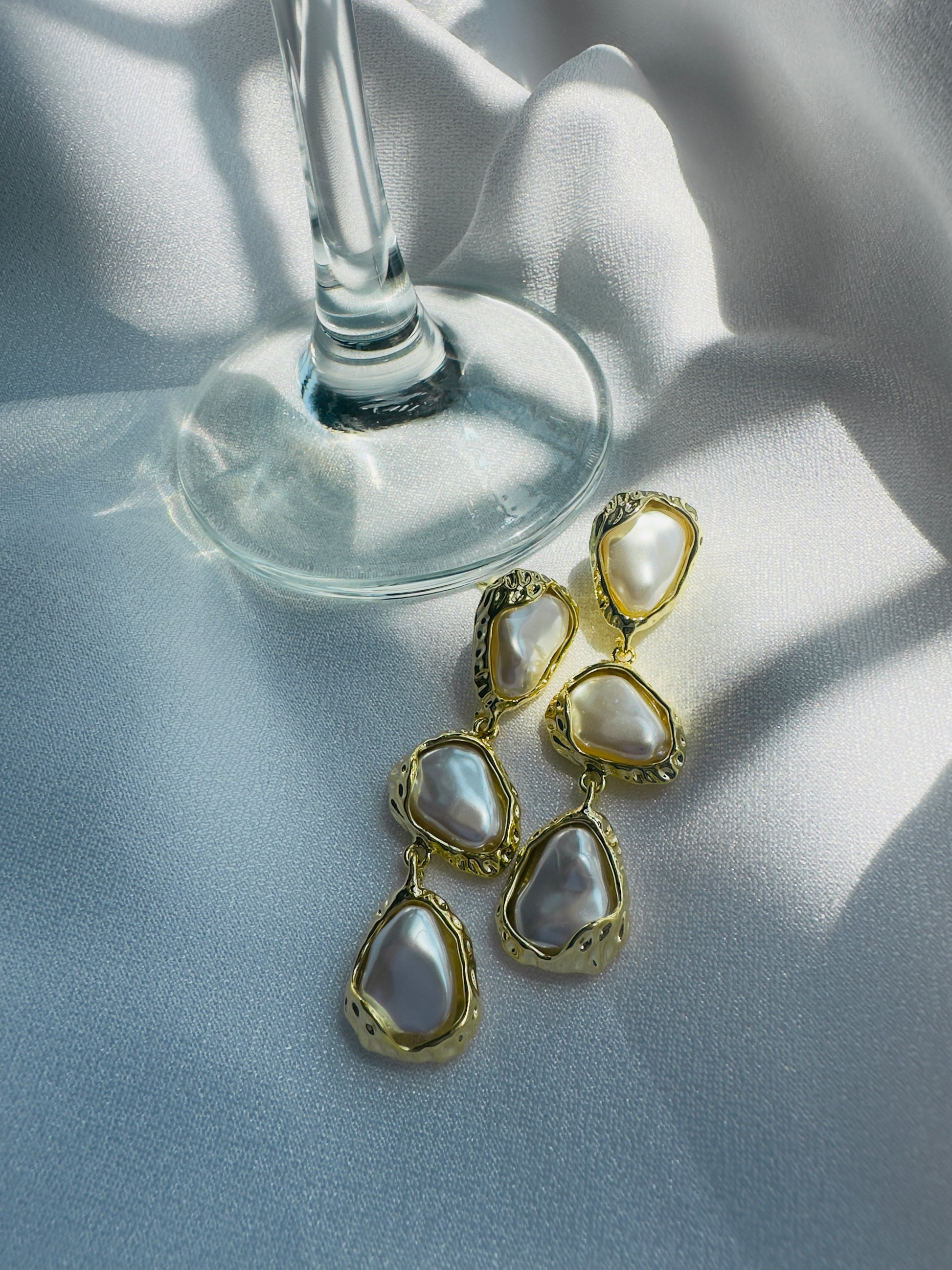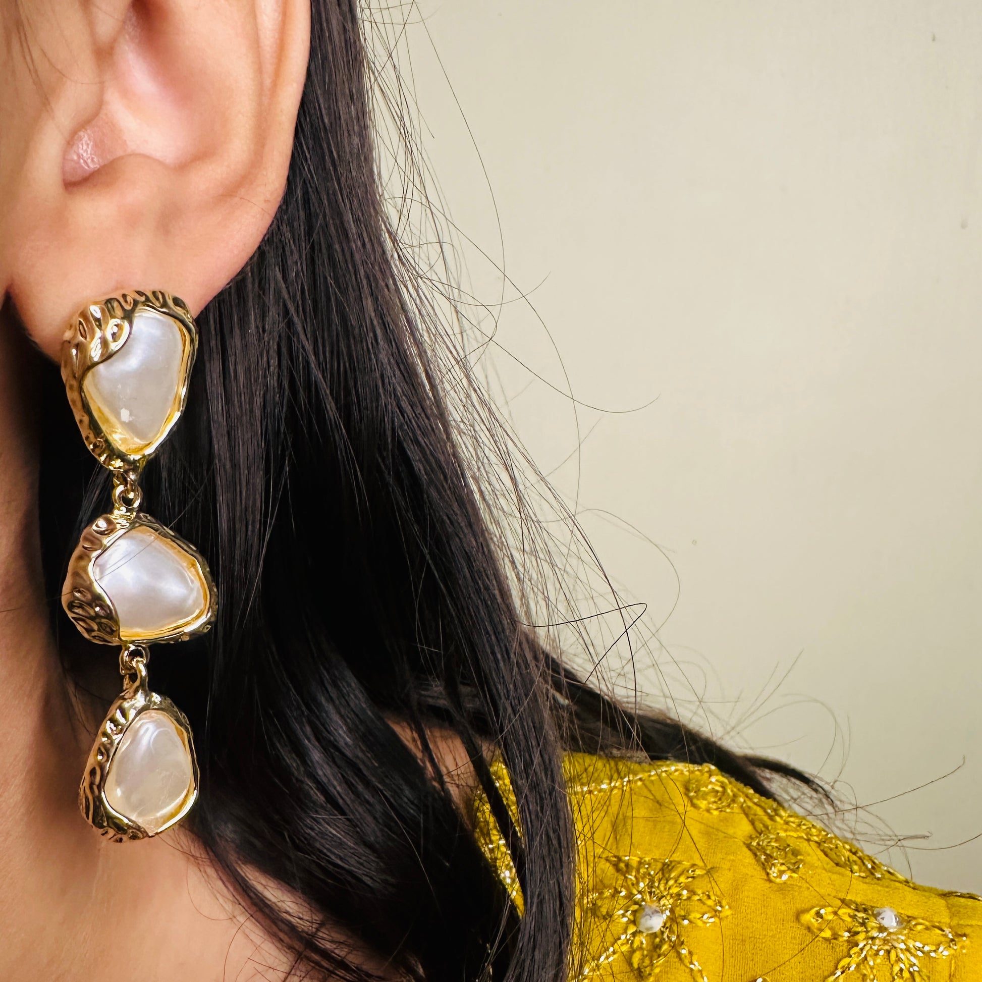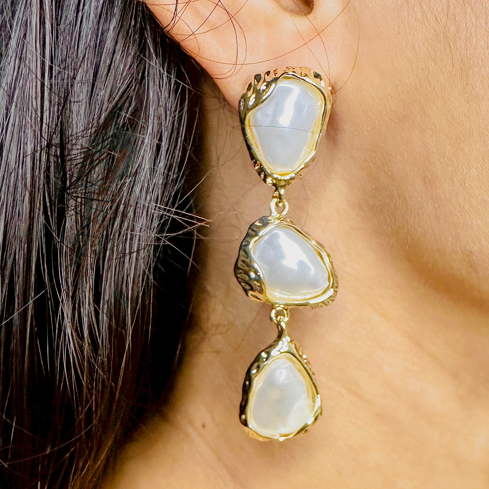 The Drift Pearl Cascades featuring organically shaped pearls wrapped in molten gold frames, these cascading drop earrings flow like water—graceful, luminous, and free-form. Perfect for those who love bold statements with a soft, feminine touch. Designed to shine with every move you make.