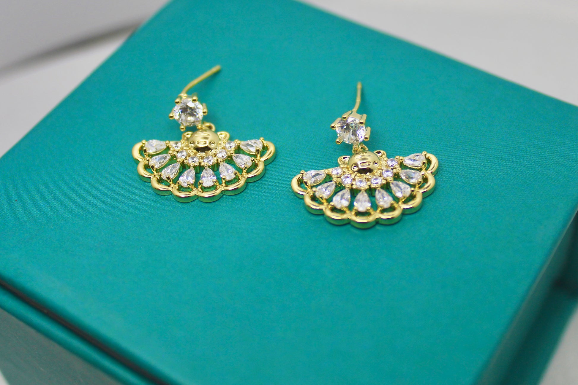 Add instant sparkle to your look with these Radiant Crystal Drop Earrings in Gold. Featuring a dazzling oval-cut crystal paired with a pavé teardrop design, these earrings strike the perfect balance between elegance and modern glam. Whether for a wedding, party, or a touch of everyday luxury, they’re designed to make you shine.
