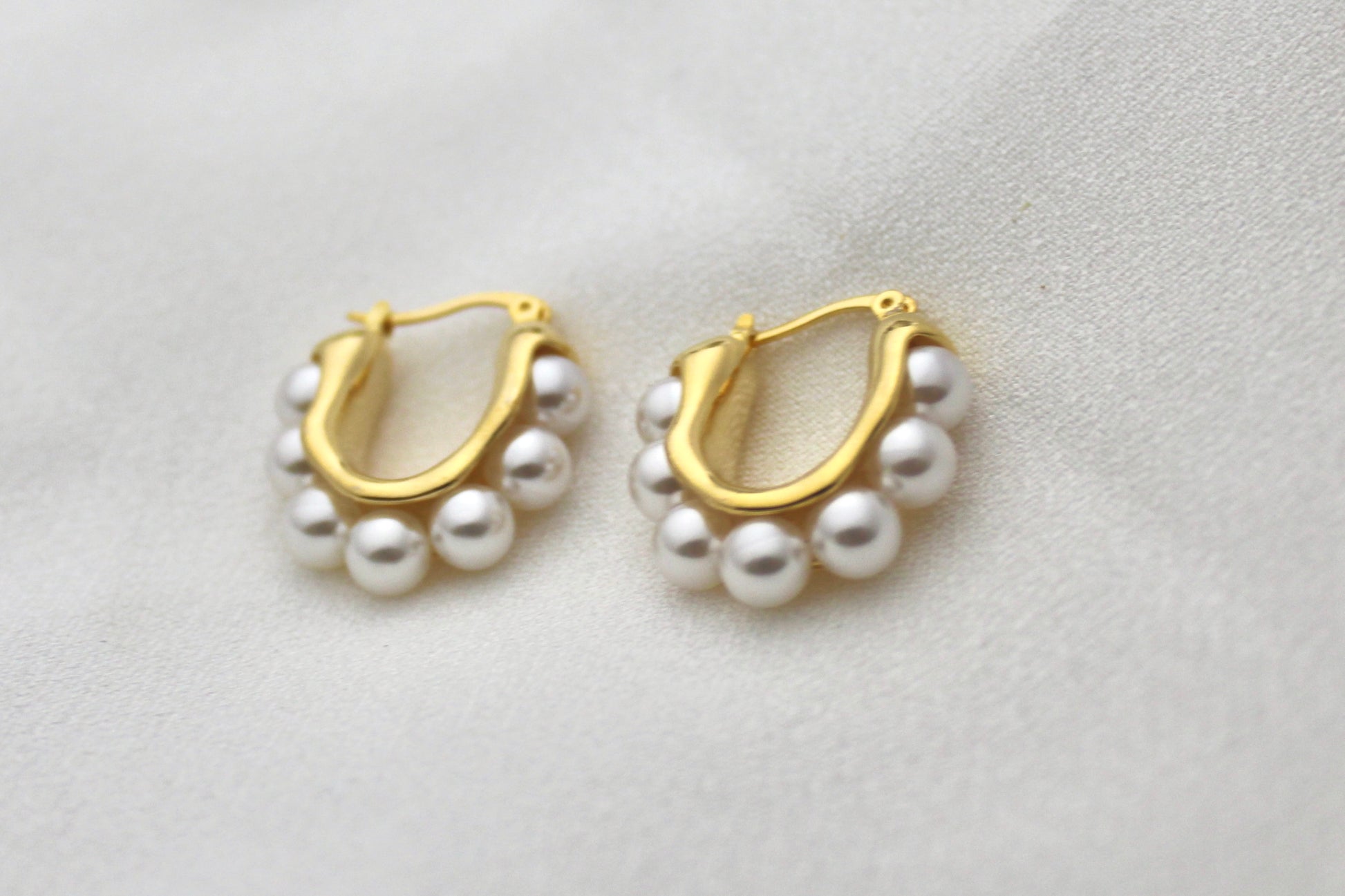A timeless classic with a modern twist — these Golden Pearl Hoops combine radiant gold with a row of lustrous pearls for an effortlessly elegant look. Perfect for adding sophistication to everyday outfits or completing a chic evening ensemble.