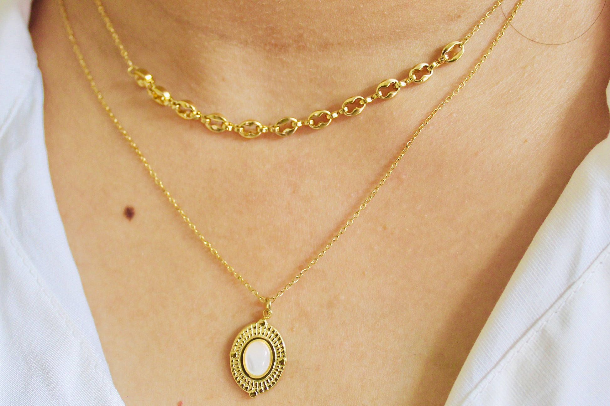 Oval Pearl Pendant Layered Necklace