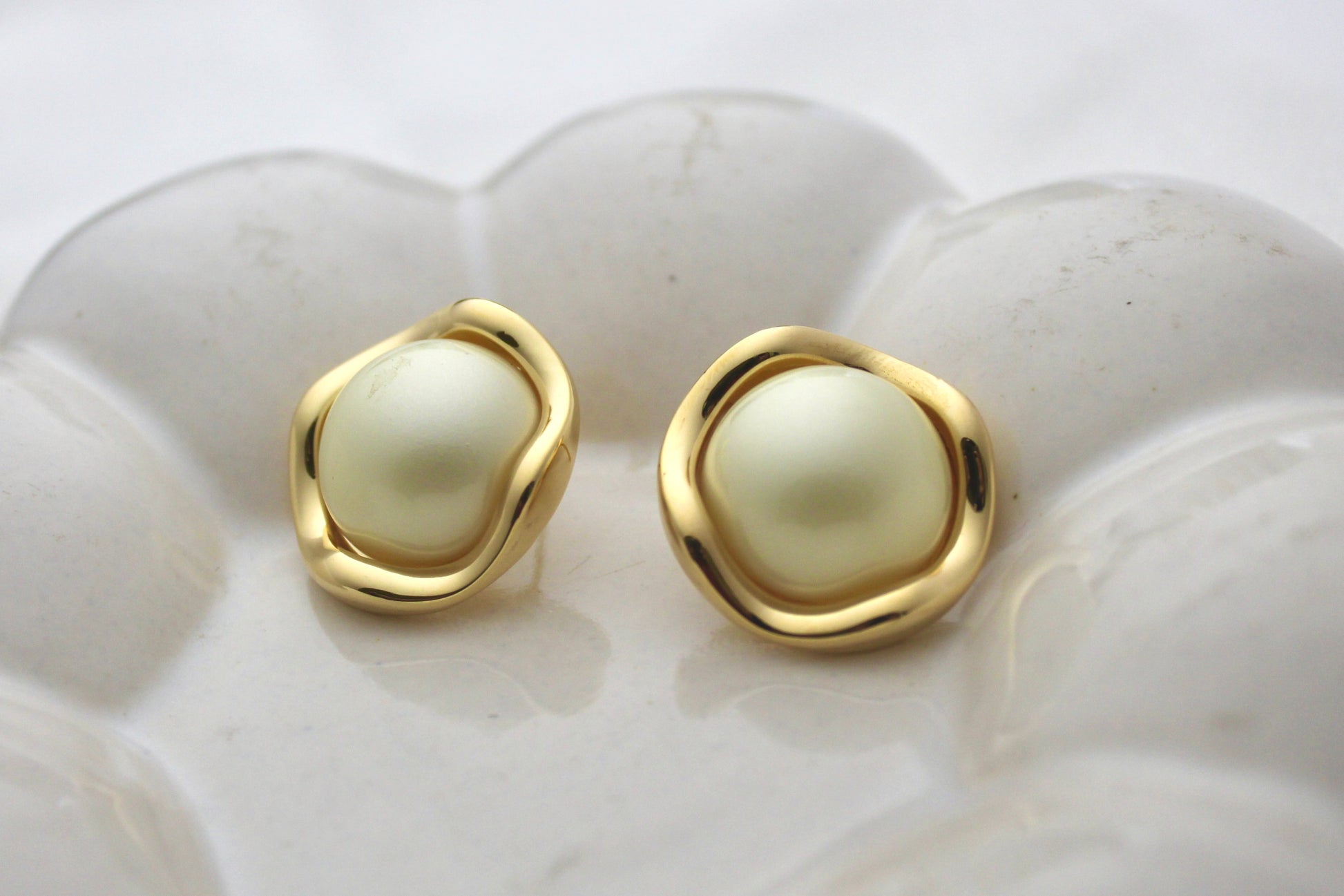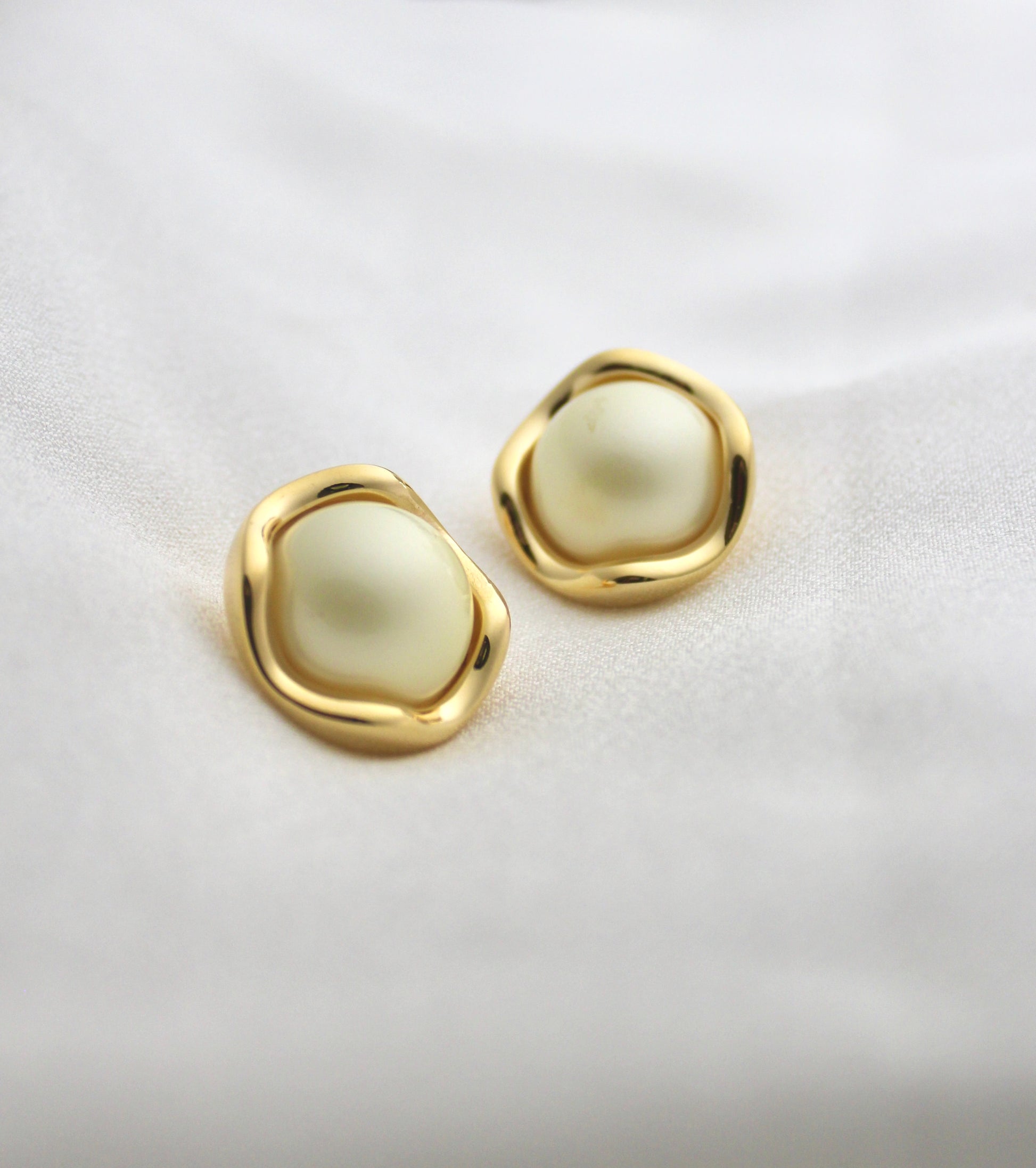 A modern twist on timeless elegance — these playful pearl studs feature a soft, organic gold frame that adds character and charm. Their lightweight design makes them perfect for both everyday wear and special occasions.