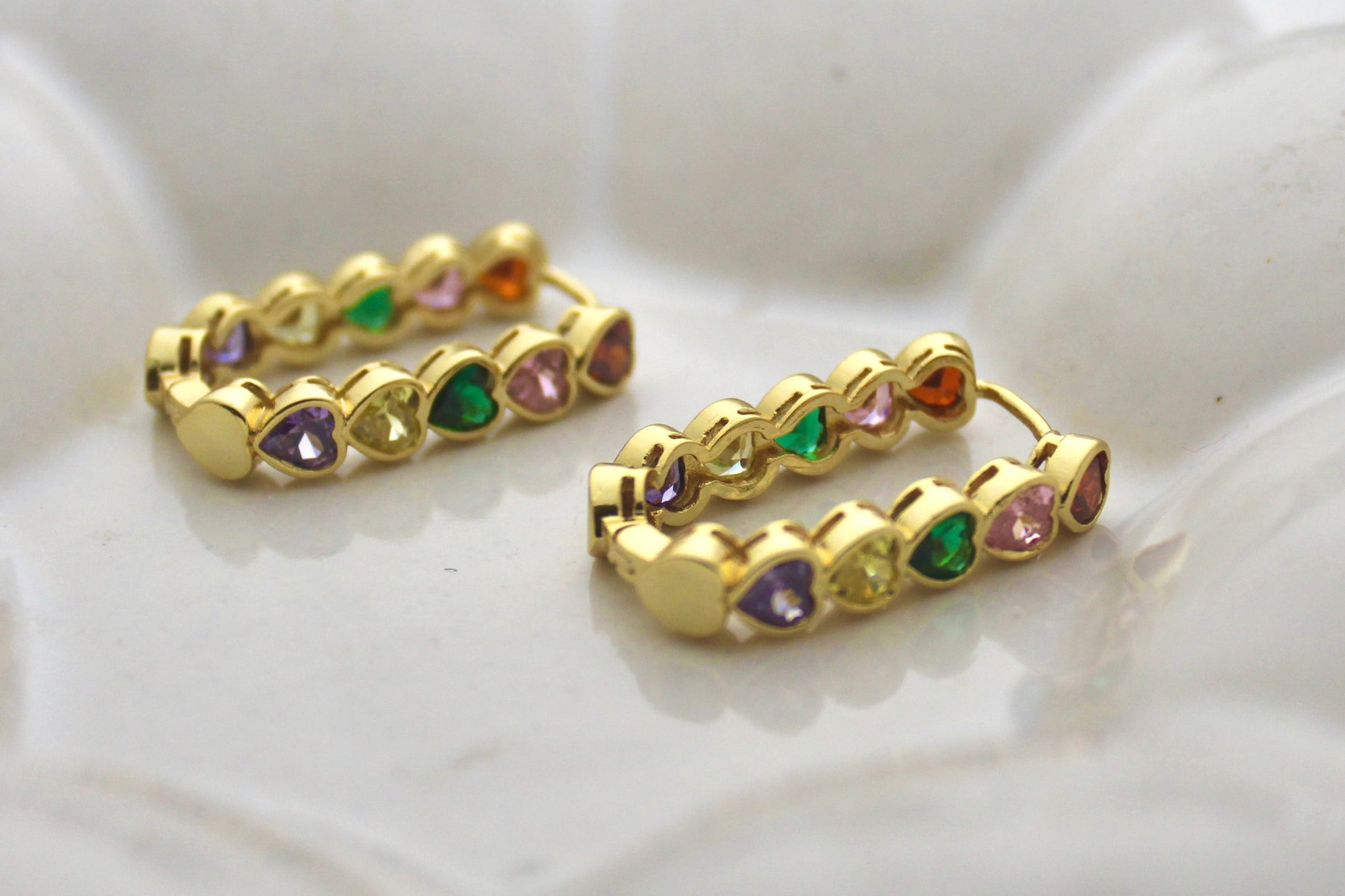 Fun, bold, and full of color — these Rainbow Chain Hoops are made to turn heads! Featuring a unique chain-link design set with multi-colored stones, they bring playful energy and vibrant charm to any look. Perfect for dressing up basics or adding a pop of personality to special occasions.