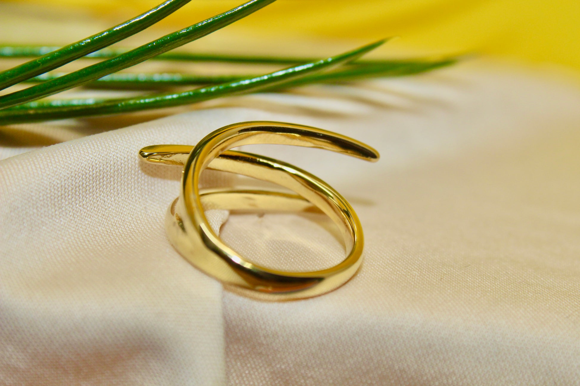 A sleek, modern statement ring with a unique split band design. Perfect for stacking or wearing solo, this gold-toned beauty adds effortless shine to your everyday fits. Minimal yet bold – your go-to accessory for that Gen Z aesthetic.